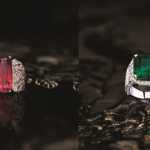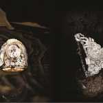 Infine, le gemme della collezione ricordano tutta la gamma cromatica delle lacche di Coromandel: il verde dei granati tsavorites, degli smeraldi o di una tormalina, di oltre trentasette carati sull’anello “Vibrazione Minerale”; il rosso dello spinelle dell’anello “Evocazione Floreale” e dei beads di rubino e la profondità ipnotica della lacca nera trasposta in onice.