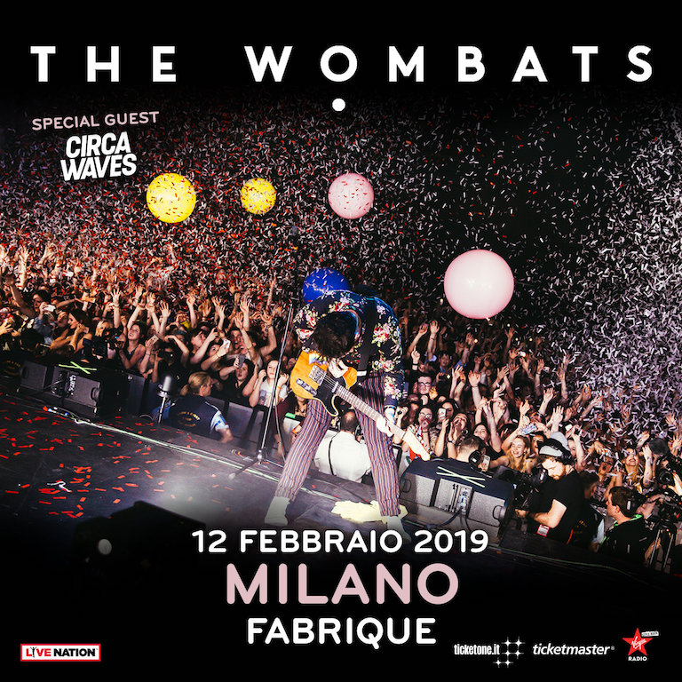 Annunciata l’unica data italiana per i THE WOMBATS + CIRCA WAVES, il 12 febbraio al Fabrique di Milano. Biglietti in prevendita esclusiva per gli iscritti a My Live Nation dalle ore 11 di martedì 11 settembre. Biglietti disponibili su ticketmaster.it, ticketone.it e in tutti i punti vendita autorizzati dalle ore 11 di mercoledì 12 settembre. L’organizzatore declina ogni responsabilità in caso di acquisto di biglietti fuori dai circuiti di biglietteria autorizzati non presenti nei nostri comunicati ufficiali.