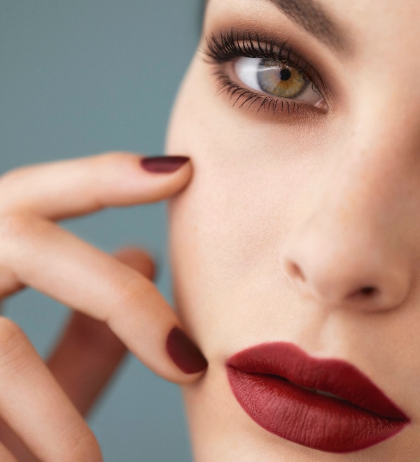 L’aspetto glamour si declina in due nuove tinte opache di Le Vernis: un rosso audace, enigmatico, e un ricco viola bordeaux per le unghie. La loro consistenza dona un effetto intrigante. Questa sensibilità perturbante si esprime attraverso il duo della collezione.
