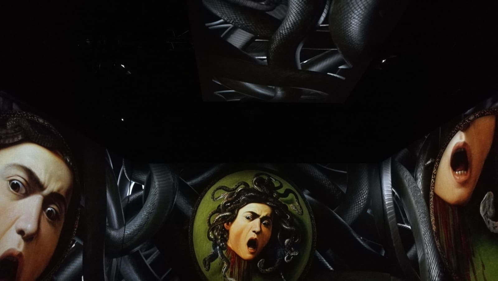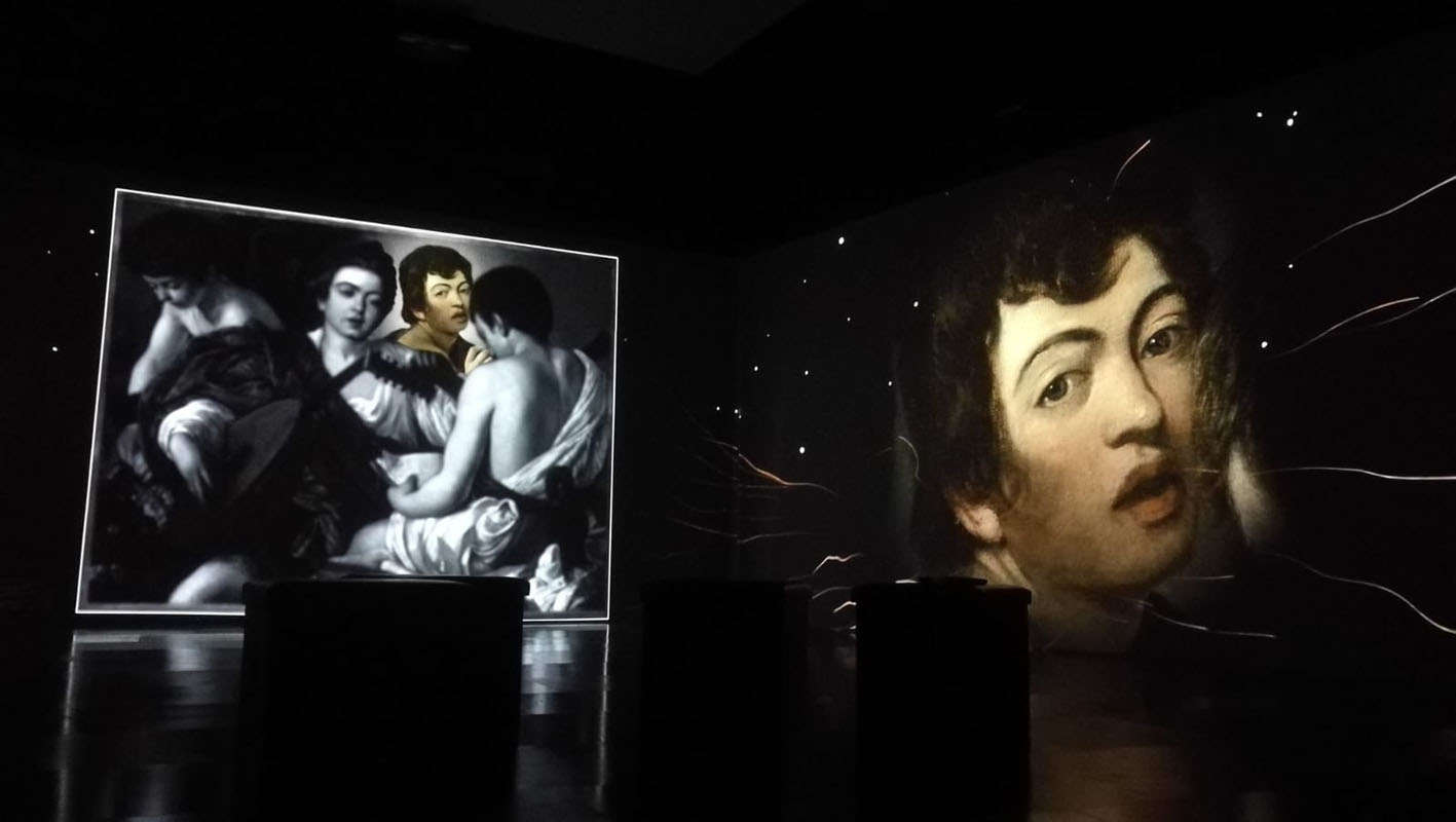 Un racconto che, grazie ad un sofisticato sistema di multi-proiezione a grandi dimensioni e video-mapping, proietta il visitatore all’interno dei dipinti e dei luoghi che l’artista ha vissuto, dandogli la possibilità di fruire le opere nella loro integralità architettonica. 45 minuti in cui ai capolavori di Caravaggio si alternano effetti speciali e immagini appositamente girate per la mostra ispirate alla storia personale dell’artista.