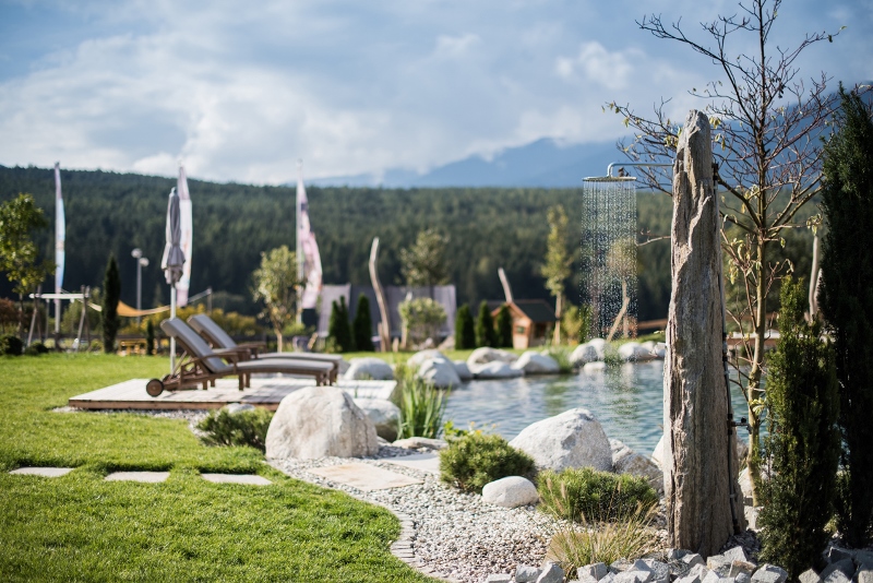 L’hotel è incentrato sul benessere sotto tutti i punti di vista, cominciando dalla camere, dotate di docce XL, extralarge per crogiolarsi sotto una piacevole e intima cascata di acqua di montagna. Le suite dispongono diarea wellness con idromassaggio privata, per rendere ancor più piacevole ilsoggiorno. Il top è la suite Sonnenberg dove la doccia è XXL e l’intimità della camera offre perfino una sauna privata alle erbe di montagna. La vista sulle pendici delle montagne con gli alberi dai mille colori autunnali è un vero privilegio. Dalle camere all’area wellness: mille metri quadri di hotel sono dedicati all’arte sapiente del “prendersi cura di sé”. L’idromassaggio caldo incastonato in una grotta ricostruita con le pietre del territorio, le 6 saune e i bagni turchi, la vasca kneipp per pediluvio idromassaggio, tanti trattamenti di bellezza, aree dedicate al silenzio e riposo (sia all’interno che all’esterno) una spa privata con diversi ed esclusivi trattamenti di coppia, per concedersi anche un idromassaggio nella grande vasca. Tra le saune: grotta salina, bagno turco aromatico, grotta fredda con doccia a secchio e ghiaccio, sauna finlandese con stufa in maiolica, sauna alle erbe, biosauna per famiglie e bambini, accesso anche con costume da bagno.