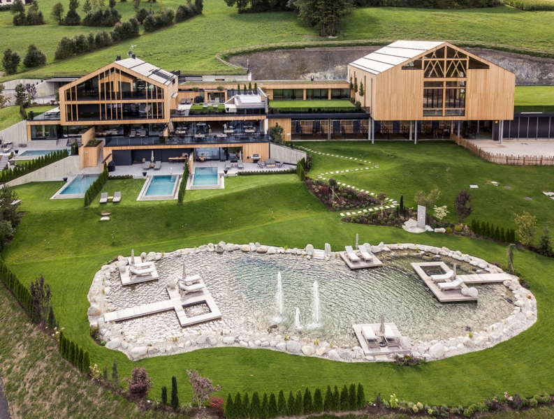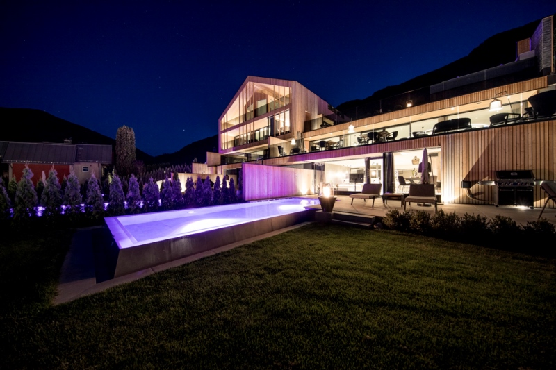 In mezzo a prati e boschi, lontani dalla mondanità il Purmontes di Mantana (Bolzano), è un luogo per rifugiarsi a contemplare la natura che si addormenta. Tutto è soave, silenzioso e lento. Poche case e una bellissima chiesa con un alto campanile con la tipica copertura a cipolla. Grazie a questo paesaggio la struttura si distingue per la sua architettura contemporanea senza tempo. Il suo carattere alpino mette in evidenza il legno di larice, la pietra, i tessuti pregiati realizzati artigianalmente, la cura degli elementi di arredo, l’illuminazione studiata nei dettagli. E, le grandi pareti di vetro catturano la natura esterna invitandola ad entrare negli spazi originali e prestigiosi degli chalet.