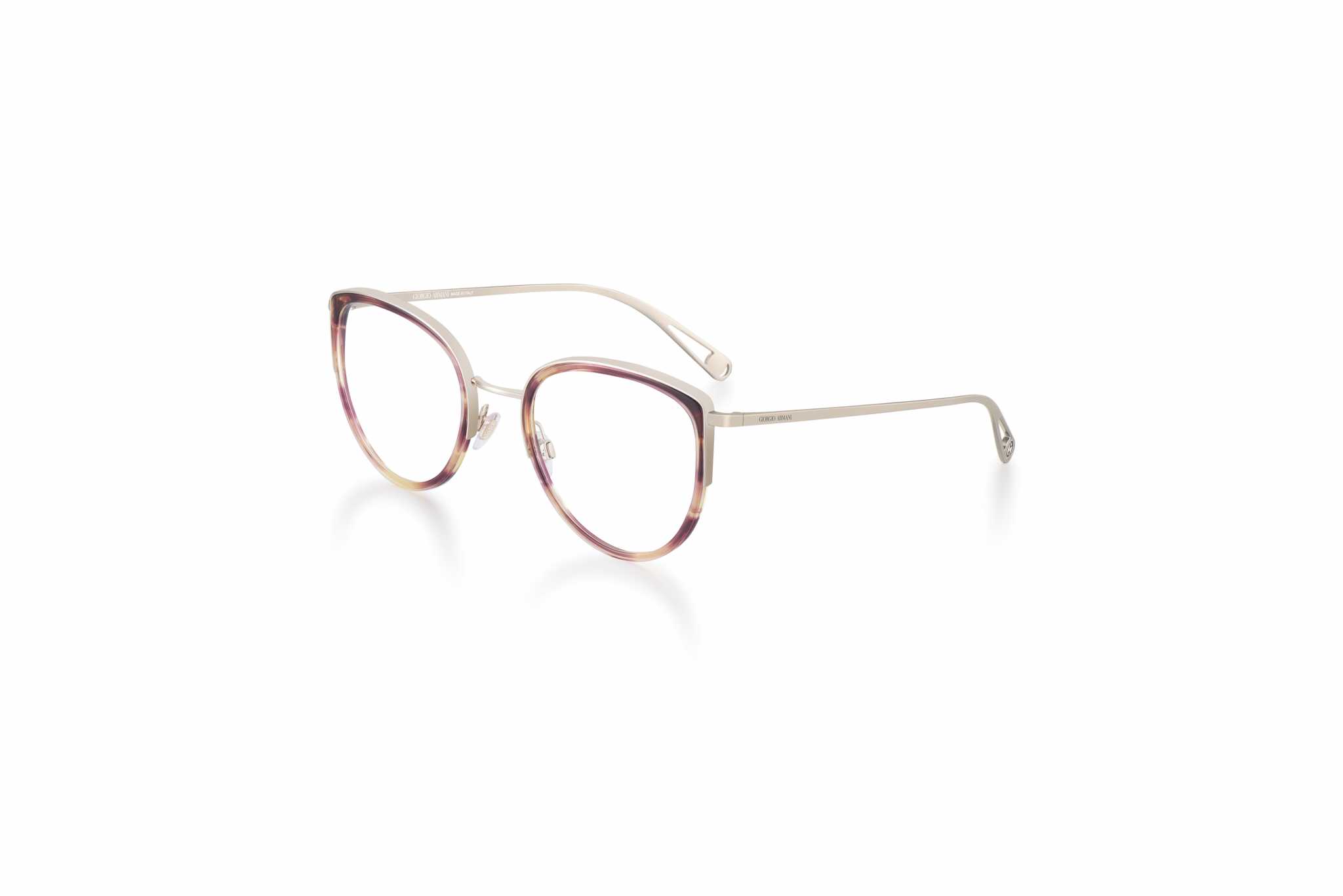 La donna che necessita di un modello da vista può scegliere il modello AR 5086 semi-rim, con una costruzione combinata a due cerchi in acetato. La parte alta della montatura è in metallo, completata nella parte inferiore da un filo di nylon. Le aste, molto sottili e piatte, hanno sul terminale il loro Giorgio Armani di ispirazione retrò