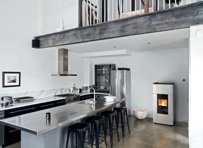 La termostufa a pellet iper potente Jazz by MCZ, a struttura stagna, è pensata per scaldare case di grandi dimensioni, fino a 325 metri quadri.