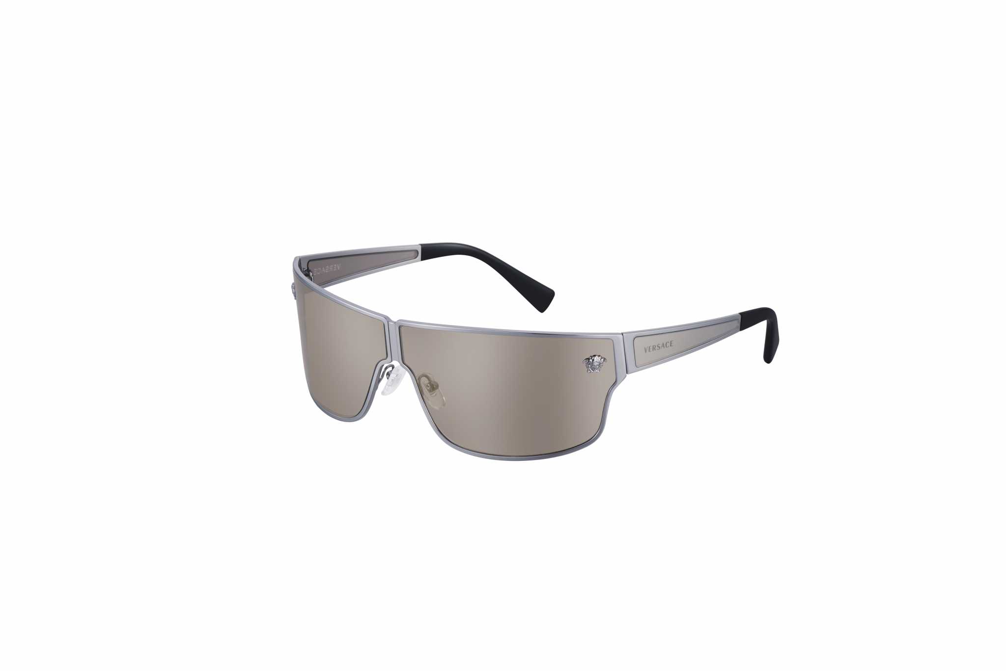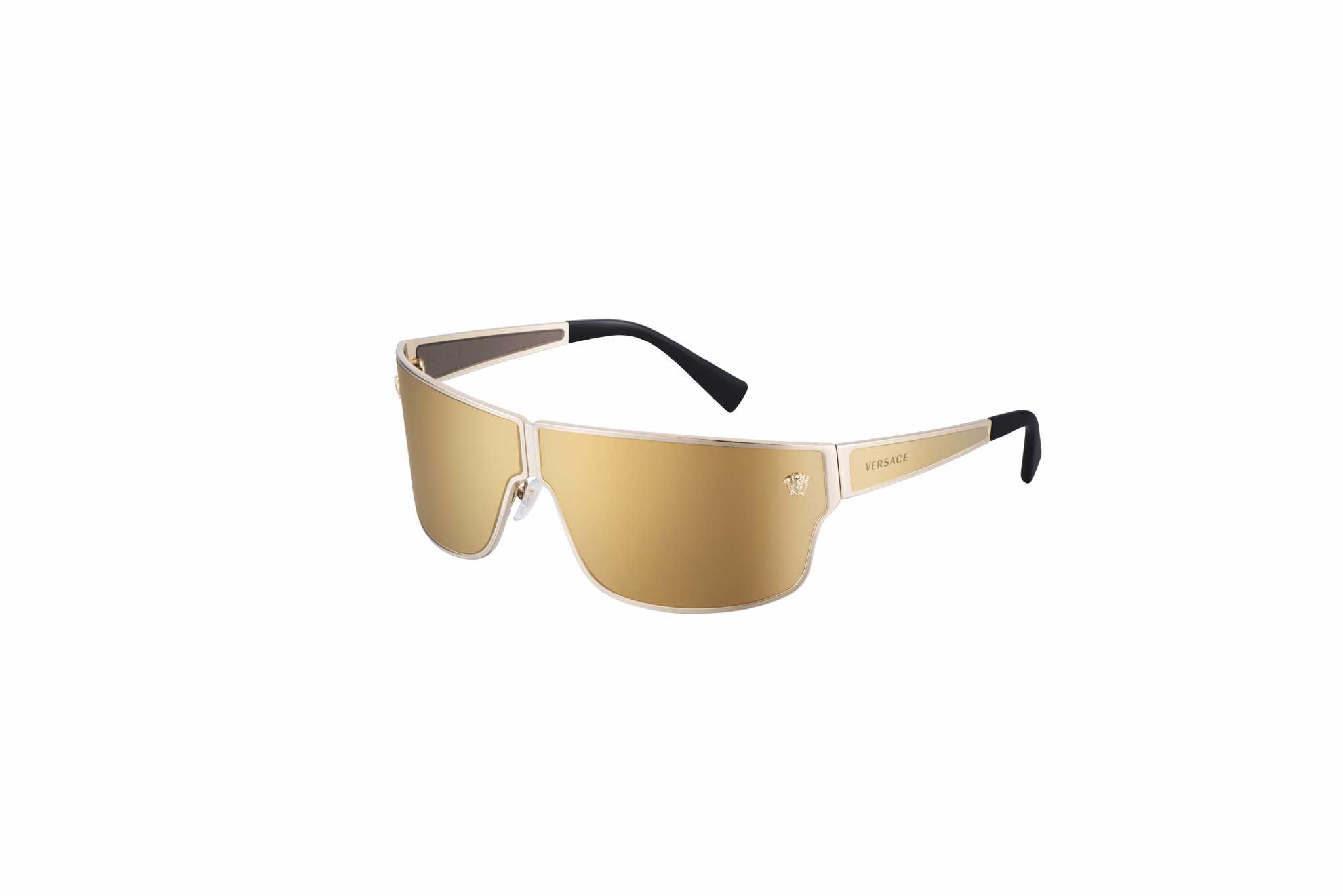VE 2206 – Medusa Aspis è un modello da sole dedicato alle icone rock, con l’interpretazione a tutta lente del medaglione Medusa. La mascherina avvolgente dai profili cilindrici presenta sofisticati cerchi in metallo, che conferiscono ulteriore potenza al dettaglio Medusa in 3D sul frontale e al logo inciso al laser sulle aste. Disponibile in canna di fucile e oro, con lenti dorate a specchio e tinta unita.