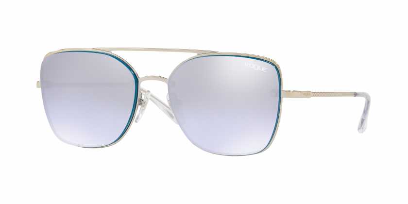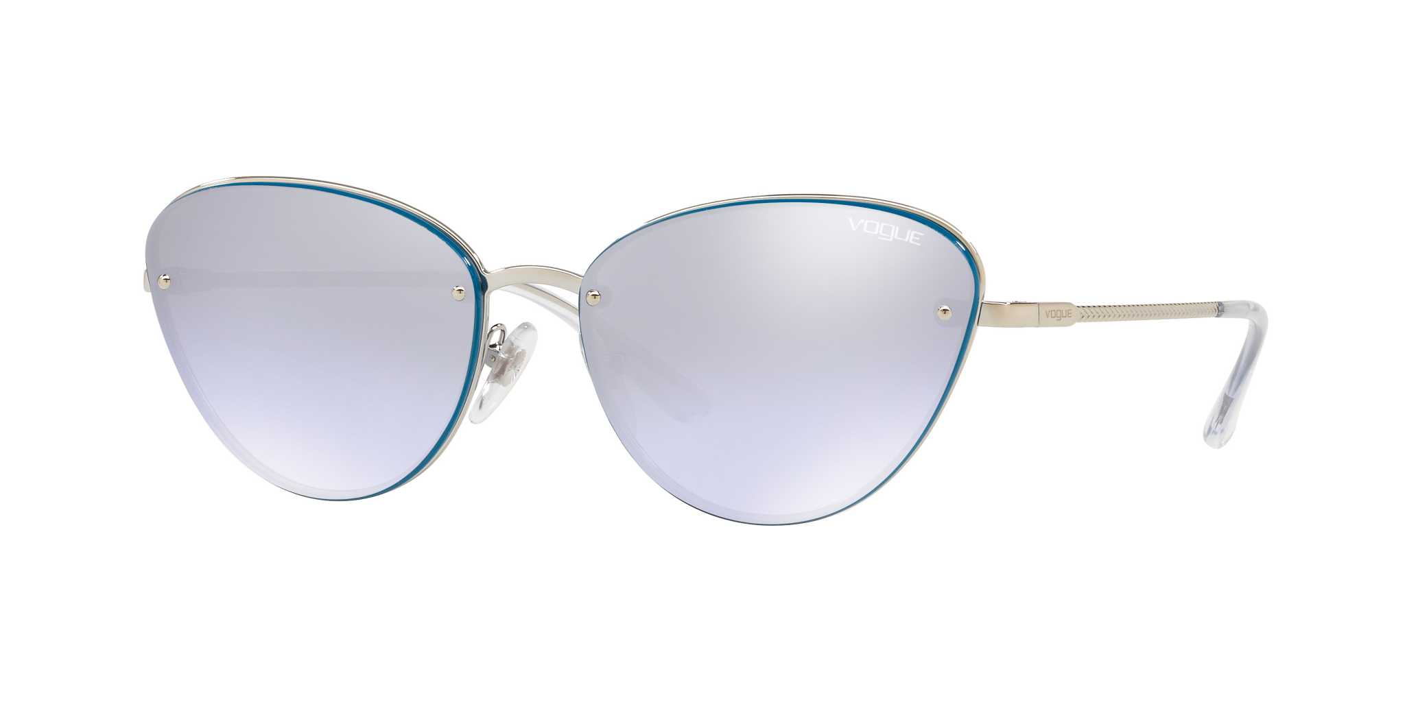Il modello VO 4111S ha lenti sfumate o a specchio in tinte soft che reiventano uno dei modelli da giorno più richiesti, aggiungendo un inedito tocco di colore. La nuova silhouette cat-eye, un must della stagione, è valorizzata dagli esclusivi profili colorati delle lenti e dalle aste intrecciate in metallo lucido, che conferiscono a questo design leggero e contemporaneo una finitura femminile intrisa dell’inconfondibile identità di Vogue Eyewear.