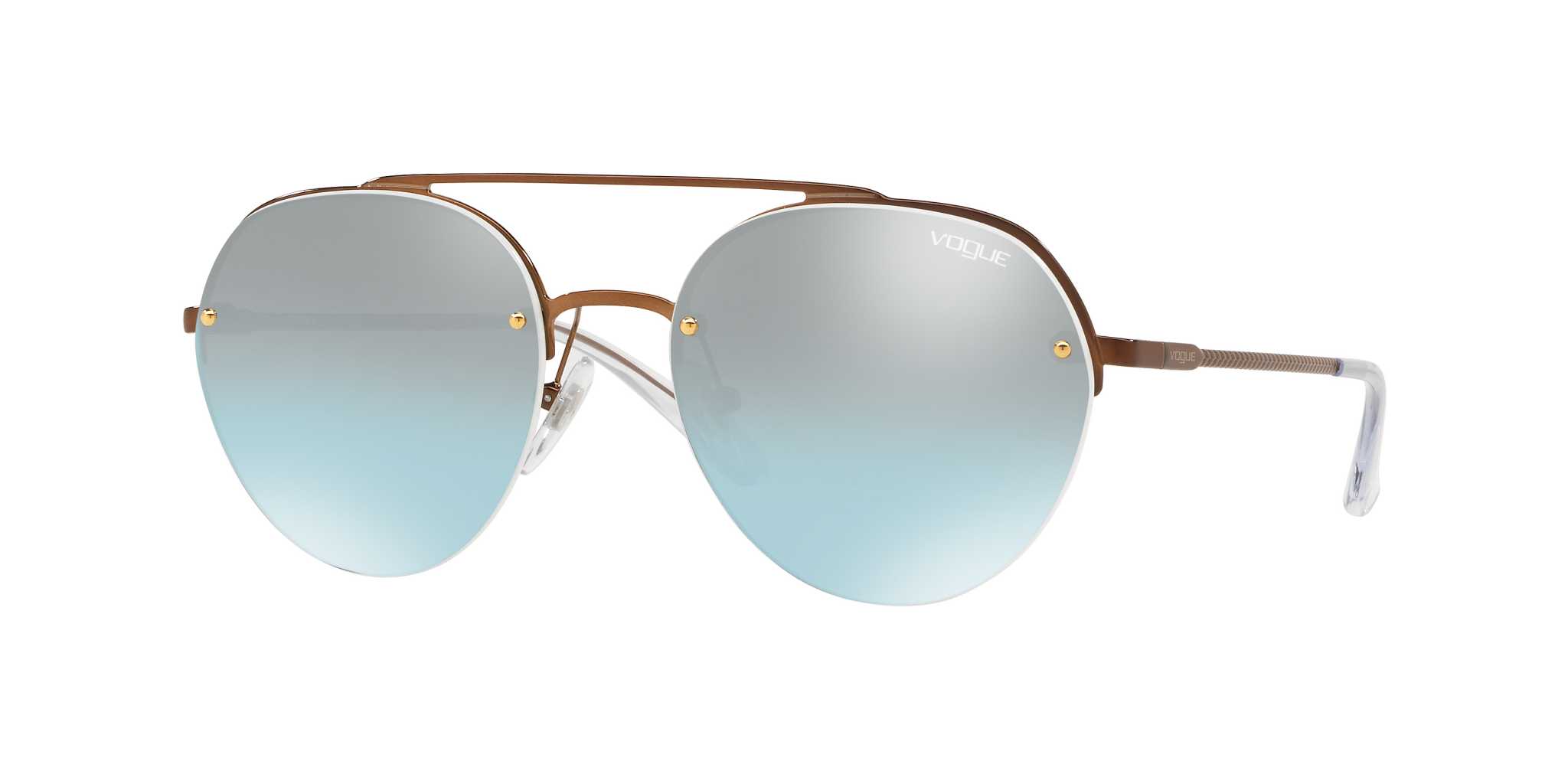 VO 4112S è una sublimazione della struttura leggera e lineare in metallo e dell’effetto sfumato, con nuovi e rinfrescanti colori che svelano il lato moderno e brillante delle carismatiche lenti flat. Pensate per dare voce a qualsiasi mood, le lenti a specchio soft, sfumate e blu délavé sono unite da un sottile doppio ponte in metallo flat e aste intrecciate in metallo in versione rame trandy, oro o argento. Un look irrinunciabile, capace di passare dal top della raffinatezza al puro divertimento in un lampo.