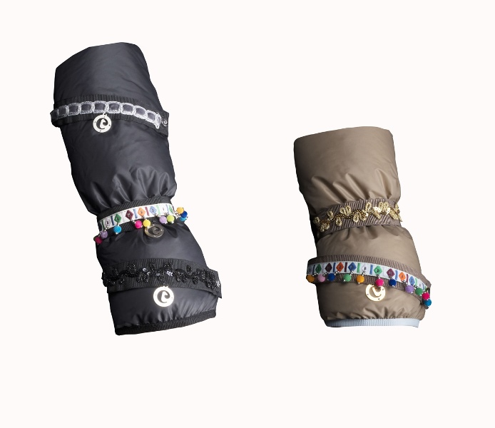 Pensati per una donna che ama la propria femminilità e vuole esaltarla anche d’inverno. Questo modello è proposto in due differenti misure e disponibile in tre colori: blu, tortora e nero. La particolarità è l’accessorio a bracciale che si può scegliere in diverse varianti (tono su tono con strass, inserti in velluto o con decori in paillettes) a seconda dell’outfit della giornata. Un elemento decorativo da personalizzare che si posiziona sul manicotto per impreziosirlo e conferirgli maggior carattere.