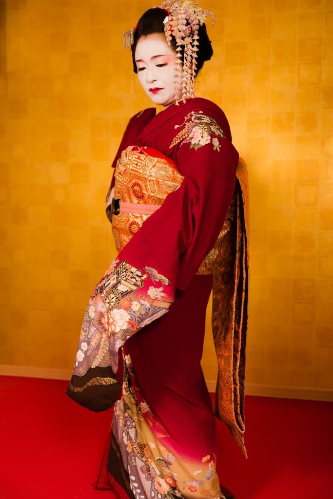 Capelli sapientemente raccolti (o parrucca realizzata ad hoc), volto bianco e truccato accuratamente e un kimono colorato bastano per rappresentare quel tipo di femminilità aggraziata e così irraggiungibile, personificando, e tatuando sul proprio corpo, i sogni, il desiderio e l’ambizione.