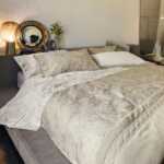 Completi lenzuola, completi copripiumino, quilt, cuscini, copriletti e morbide proposte per il bagno suggeriscono un luxury lifestyle che si declina in due gamme di abbinamenti cromatici. Da un lato, la camera da letto si tinge dei toni neutri con il bianco seta, il torrone e il gesso; dall’altro, ritrova vigore nelle sfumature calde e avvolgenti, dai rosa ai terracotta, così come in quelle delicatamente fredde, dal verde menta al celadon. L’oro, scelto nei dettagli, diventa l’elemento di preziosità.