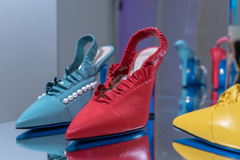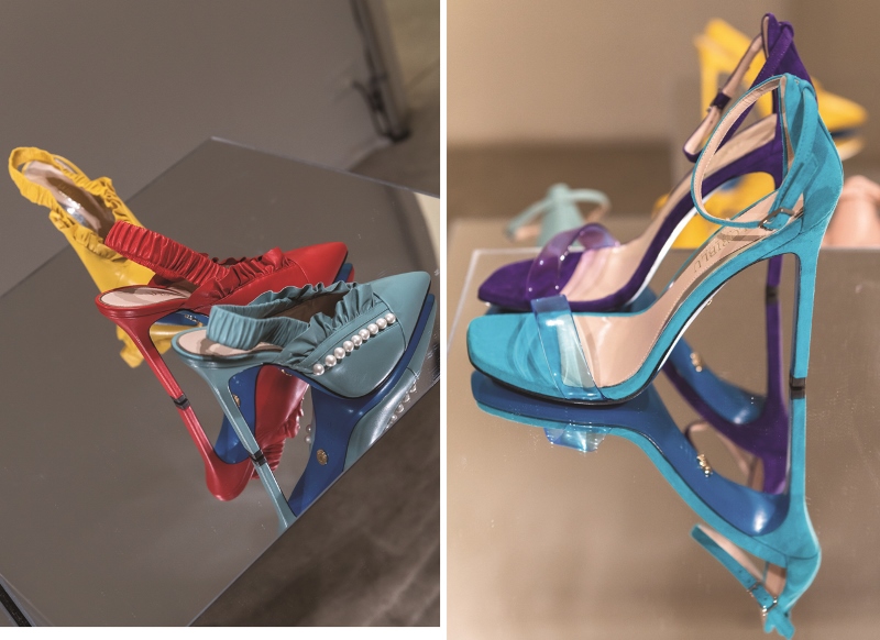 Delicate e vibranti decorazioni dipingono come le pennellate di un quadro la morbida e leggera pelle delle tronchetti e décolleté per uno stile che mescola elementi della pelletteria a dettagli contemporanei ed estremamentericercati. Sandali dal raffinato pellame si arricchiscono di dettagli trasparenti dal design moderno creando un sapiente gioco di riflessi e bagliori iridescenti. Accessori audaci ed eleganti pensati per accompagnare giovani trend-setter dallo stile sempre impeccabile e femminile.