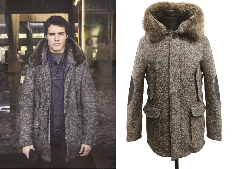 All’interno la fodera imbottita isola perfettamente dal gelo. Dal modello originale, nato due secoli fa, il nuovo “Walk-the-Dog-Parka” recupera il taglio e il numero delle tasche. Anche nella proposta per la FW 2019 sono infatti applicate a soffietto quelle in basso, mentre la coppia in alto si inclina in diagonale, per agevolare l’inserimento delle mani da scaldare. La linea si allunga, si aggiunge il cappuccio e la proprietà anti vento un tempo risolta dal doppio petto oggi si sintetizza nell’abbottonatura invisibile sovrapposta alla zip, rigorosamente nascosta all’interno per conferire al capo un’allure di gusto retro.