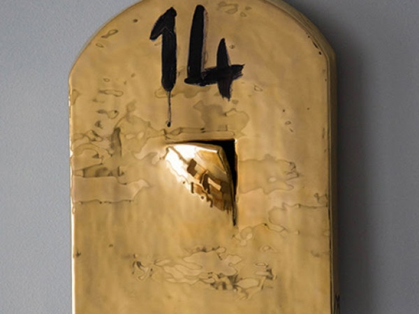 Le formelle di Mimmo Paladino sono dipinte con tocco rapido e veloce in nero su di un omogeneo fondo d’oro zecchino. Con scene sobrie ed essenziali, costruite attraverso semplici dettagli di volti, di croci, di mani o di rami, di ombre inafferrabili di presenze umane, Paladino fa riferimento a un mondo mitico-simbolico che affonda le proprie radici alle origini della storia, riconducendoci a una realtà primordiale, antica e arcana, invitandoci a percorrere un cammino a ritroso nel tempo.