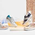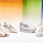 Fresche e giovanissime le nuove sneakers con zeppe altissime arcobaleno, reti che sembrano lavorate all’uncinetto, trafori a forma di cuore e inediti fondi trasparenti colorati abbinati alle classiche tomaie in pelle decorate con graffiti, oppure metallizzate dove l’oro e l’argento brillano al sole. Nuova l’interpretazione della linea più femminile, con tacchi gioiello altezza 100 o 50 abbinati a tronchetti o sandali in pelle e scamosciato. Pellami morbidi e uno stile pulito che valorizza l’esclusività dei tacchi, versioni metallizzate accese d’argento e di fucsia per un look sorprendentemente glamour.