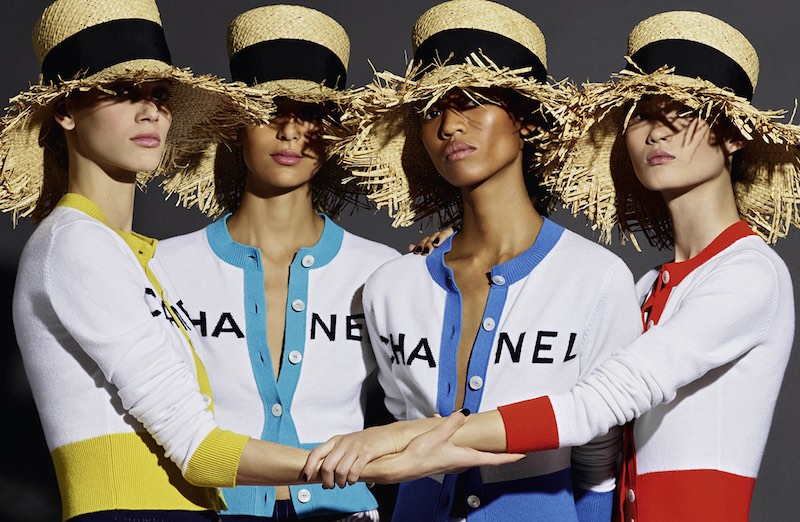In contrasto con la bella spiaggia sabbiosa che ha immaginato al Grand Palais per la sfilata Prêt-à-Porter Primavera-Estate 2019 di Chanel, Karl Lagerfeld ha scelto un fondale antracite per la campagna che accompagna la collezione. Una differenza ulteriormente evidenziata dalle foto che si alternano tra colore e bianco e nero.