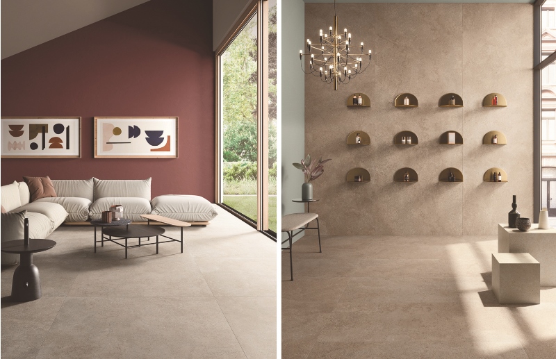 La nuova linea effetto pietra si presenta con una texture materica e una superficie morbida perfetta per ambienti interni ed esterni. Quattro le varietà cromatiche: Avana, Ivory, Grey e Gold disponibili in diversi formati.