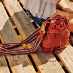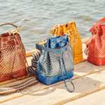 La nuova generazione di mini secchielli della collezione SS19 di The Bridge, s’ispira ai modelli d’archivio degli anni ’70. Simbolo di quegli anni, il secchiello è diventato un accessorio cult anche negli anni ’80. Oggi più morbido nelle forme e nella silhouette, è tornato ad essere un accessorio di moda, proposto da tante maison. Protagonista delle passerelle è arricchito da nappine e frange mentre a volte presenta linee molto pulite e semplici con una chiusura a coulisse. Il motivo traforato aggiunge un sapore sporty-chic alla collezione e la doppia tracolla (una è in filo di nylon colorato) unita al manico per portarlo a mano o a braccio, ne sfruttano la doppia funzione. In quattro divertenti e giovani nuance: il classico marrone, giallo, rosso e azzurro.