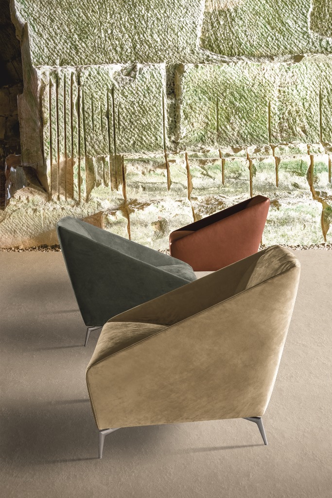 Le forme squadrate caratterizzano la poltrona Zoe di Alivar, disegnata da Giuseppe Bavuso. Si tratta di un arredo che si adatta facilmente a qualsiasi ambiente grazie all’estrema versatilità che la contraddistingue. La silhouette ‘importante’ di questa nuova poltrona ben contrasta con le gambe esili e appuntite in fusione di alluminio verniciato – un dettaglio, quest’ultimo, che torna spesso nella collezione HOME PROJECT.