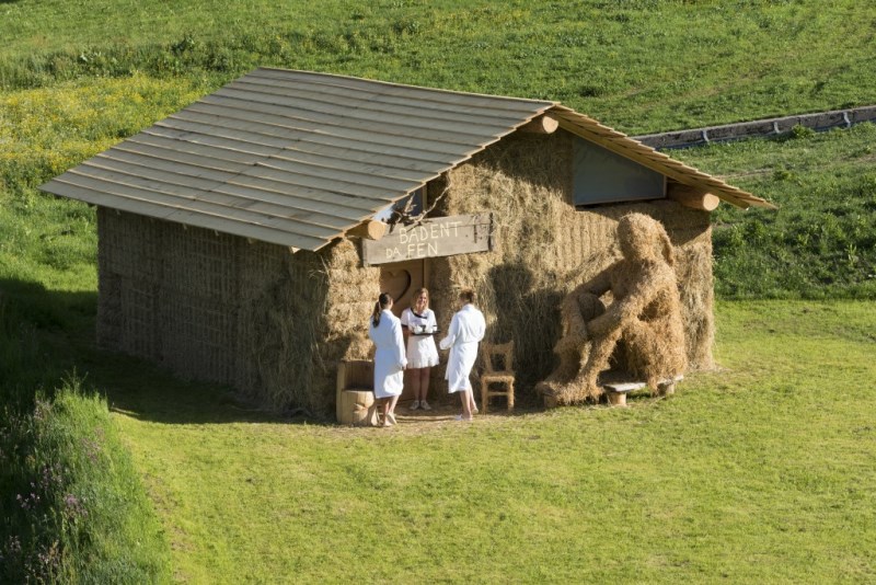 Il profumo è avvolgente, l’esperienza è un’immersione nel benessere alpino, che coinvolge tutti e cinque i sensi: davanti all’Hotel Lac Salin SPA & Mountain Resort di Livigno, entra in scena uno speciale chalet dalla forma quadrata, costruito interamente con il fieno per regalare agli appassionati del benessere naturale un’esperienza insolita, capace di risvegliare vista, tatto, udito, olfatto e gusto. Il leit motiv è la natura alpina e il fieno, il materiale che meglio rappresenta sia il paesaggio di montagna, sia la cultura, la tradizione e il lavoro dei contadini. Si tratta di entrare, in senso letterale, in un ambiente raccolto (lo chalet misura internamente circa 25 metri quadri) e lasciarsi abbracciare dalle note olfattive del fieno, in grado di rilassare e di creare un’atmosfera ovattata.