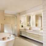Un mélange decorativo tra stile contemporaneo e sublime eleganza mediterranea contraddistingue le camere e le suite del SANI CLUB, valorizzate dal design accattivante delle due collezioni di Fima Carlo Frattini disegnate da Castiglia Associati: Nomos Go – miscelatore lavabo alto e miscelatore vasca a pavimento – e il miscelatore lavabo Next, entrambi nella finitura cromo.