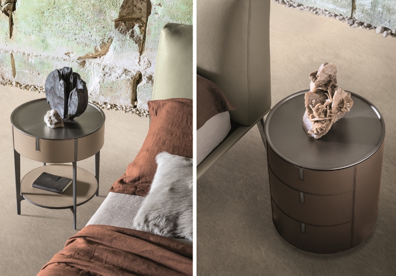 Rotondo nel nome, rotondo nell’aspetto, il nuovo comodino Round di Alivar è disponibile in due differenti modelli, con e senza gambe.