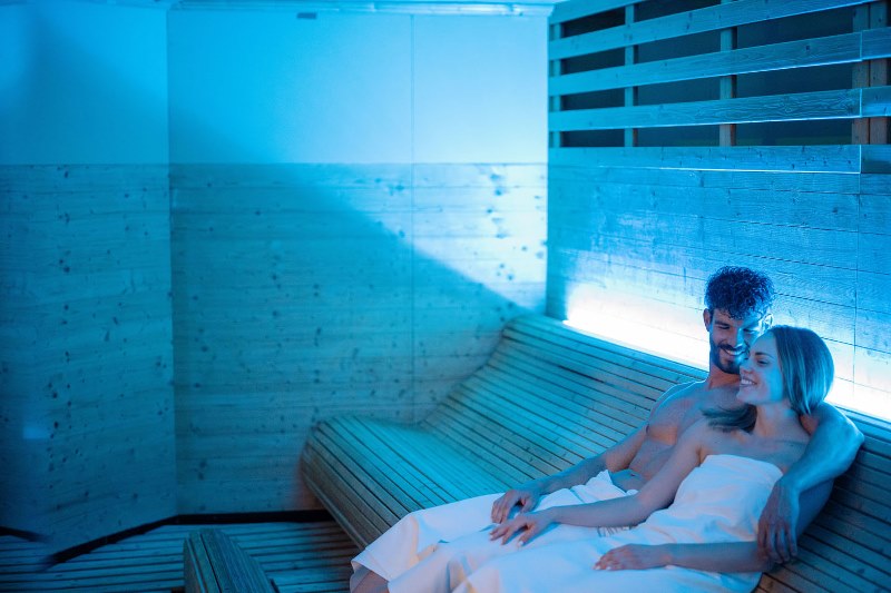Vista mozzafiato anche per la nuova Sauna panoramica grazie alle ampie vetrate, mentre il profumo delle erbe, abbinato al benefico calore, inebria i sensi nella Sauna della natura e nel Bagno di vapore. Ma la vera novità è Cristalli di neve: l’ambiente, con temperatura massima di 12°C, ideale per il raffreddamento del corpo e la riattivazione della circolazione sanguigna, in contrasto con la calda temperatura delle saune. Essenze naturali, musica meditativa e illuminazione policromatica caratterizzano il Vitarium; cromoterapia personalizzata e una calda pioggia filiforme animano la Aemotio Spa; alta concentrazione salina nel Tempio del sale.