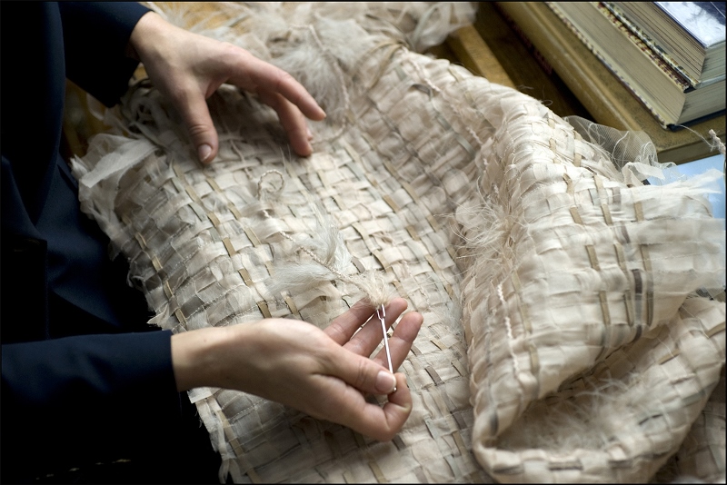 A partire dal materiale: il tweed. Da un semplice tessuto riservato all’abbigliamento maschile, ha creato una firma a metà degli anni ’20. Fu lei, e lei sola, a definire questo fascino. “L’eleganza dell’abbigliamento arriva con la libertà di muoversi”, direbbe. Il savoir-faire dell’atelier tailleur in rue Cambon risponde a un’esattezza assoluta. La parte anteriore è montata lungo la grana dritta, senza dardi del busto, per aumentare l’elasticità senza perdere la sua forma. Lo stesso principio viene applicato sul retro, separato semplicemente da una cucitura al centro. La manica è posizionata in alto sulla spalla per ottimizzare il comfort. Il rivestimento risponde agli stessi requisiti: ci sono tanti pannelli di rivestimento quanti i pannelli di tweed. “L’interno dovrebbe corrispondere all’esterno” , diceva spesso. I due tessuti, cuciti intimamente in modo quasi invisibile, si muovono così insieme, senza nulla che limiti il​movimento. Per garantire una caduta perfetta, una catenina in ottone è cucita nell’orlo della giacca, sulla fodera. Ogni dettaglio è considerato. La treccia è evidente: la treccia evidenzia i contorni della giacca, i bordi delle tasche, i polsini delle maniche, aggiungendo una forza grafica. Per quanto riguarda i bottoni, sono come gioielli in galalite, in resina o in metallo, impreziositi da una testa di leone, con grano, con una camelia o marchiati con una doppia C.