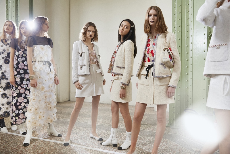 Muoversi, vivere, essere se stessi, senza ostacoli, questi sono i principi fondanti che hanno ispirato Virginie Viard per la Cruise Collection 2019/20. In linea con il vocabolario stilistico di Gabrielle Chanel e Karl Lagerfeld, ha rielaborato la giacca CHANEL con una delicata modernità in una moltitudine di proposizioni: con due, quattro o sei tasche, con o senza colletto, con spalle morbide e arrotondate o al contrario quadrata e nervosa, tagliata corta o lunga, monopetto o doppio petto con pannelli drappeggiati, fasciato da una catena intrecciata con pelle. Virginie Viard ha anche offerto una nuova visione della tuta, come minigonne fluide con tasche applicate, mutande allungate, pantaloncini o leggings Bermuda che accompagnano le giacche foderate con fodere abbinate. I colori del tweed sono franchi, viola, verdi, fucsia o mescolati in variazioni di toni delicatamente specchianti. In questa stagione la giacca CHANEL viene anche in una tela di cotone cerata o in tweed di cotone, che evoca ogni variazione di denim, e si rivela in una purezza sofisticata con ogni dettaglio perfettamente preciso: trecce sottili, bottoni gioiello con una lucentezza tenue, fodere in seta che si estendono il motivo del tweed in perfetta continuità … Dall’intuizione alla creazione, dalla collezione alla collezione, la giacca CHANEL non smette mai di tessere la sua bellissima storia.