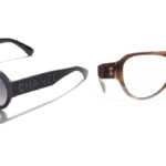 Tema ricorrente in tutta la collezione, lo strass illumina la firma CHANEL. Sulle montature quadrate molto femminili in nero, blu navy, verde scuro e acetato tartarugato, il nome CHANEL appare lungo un tempio come una lacca per capelli ingioiellata. Sull’altro tempio, anche la doppia C è intarsiata.