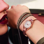 I bracciali-cinturino sono in pelle, giro singolo (21 cm) o doppio (38 cm), oppure in tessuto a doppio giro (38 cm), declinati in diversi colori (10 per ogni versione) e tutti con aforismi a tema tempo. Per citarne alcuni, “Dai ad ogni giorno la possibilità di essere il più bello della tua vita” (Mark Twain) è una delle frasi presente sui cinturini di pelle, come “Later it will be too late. Our life is now” (Jacques Prévert), oppure “È il tempo che dedichiamo alle persone che le rende preziose” (Antoine de Saint-Exupéry). Dalle citazioni letterarie alle brevi frasi motivazionali, come “Never give up”, “Carpe Diem”, “Good Karma”, “Never look back”, “If not now, when?”.
