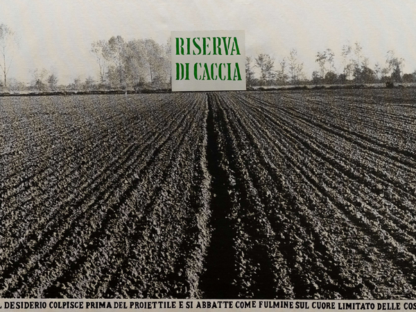 Il rapporto con il racconto, la poesia e l’immagine fotografica è il filo conduttore dell’intero allestimento. Centrali all’interno dell’esposizione sono due lavori dalla serie Riserva di caccia, realizzati partendo da due sequenze fotografiche che ruotano attorno alla scritta “Il desiderio colpisce prima del proiettile e si abbatte come fulmine sul cuore limitato delle cose” e che raccontano il dilemma tra desiderio e istinto predatorio, attraverso tre grandi trittici in tela.