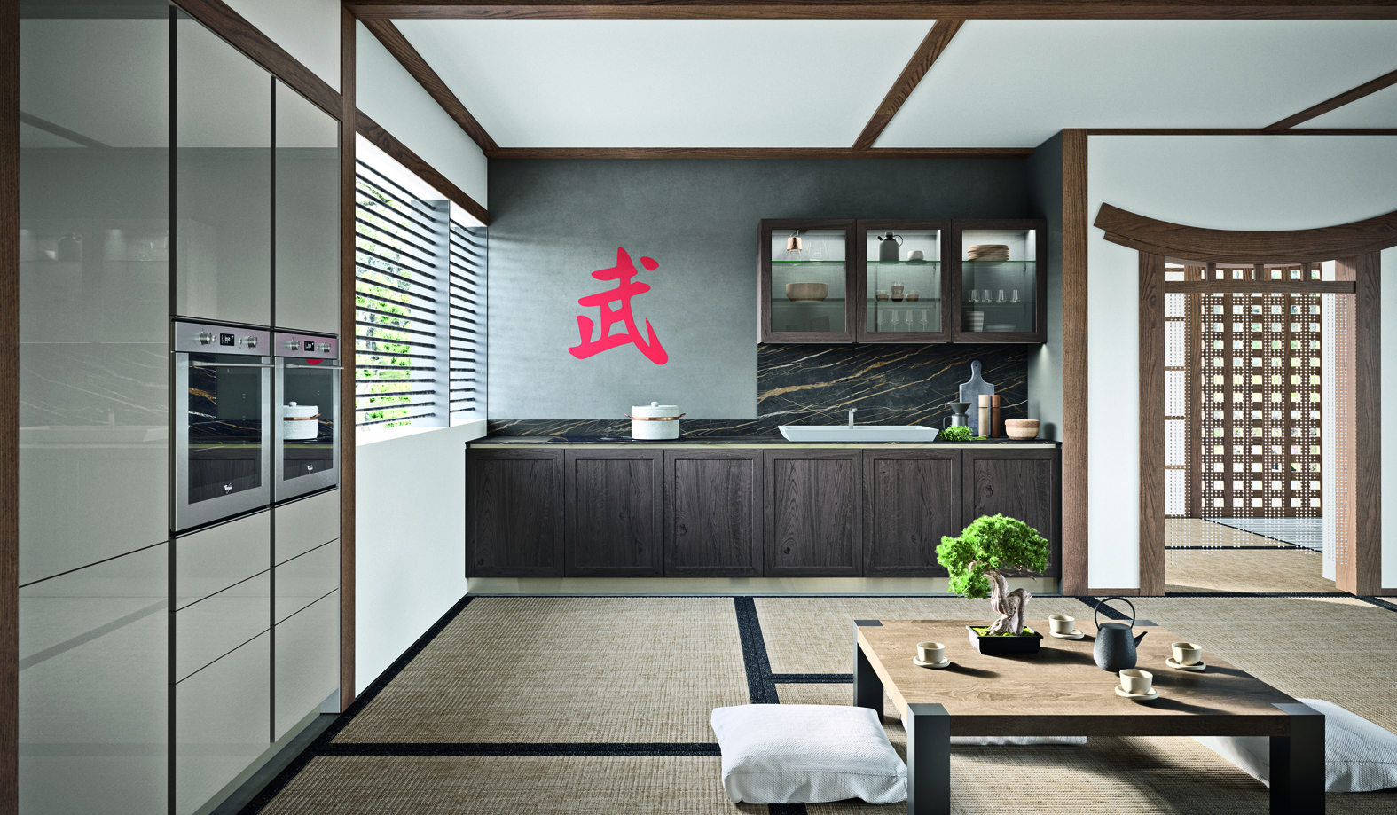 Infine, come centro nevralgico della cucina, un kotatsu capace di catalizzare tutte le funzioni legate allo spazio abitativo più importante di ogni casa, dalla consumazione del cibo alle interazioni tra familiari ed amici. È così dunque che Fabula rende omaggio alle ambientazioni orientali che emanano una essenziale e confortante semplicità.