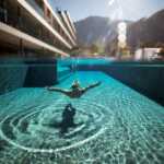 Per galleggiare e rilassarsi in acqua ci sono 7 piscine indoor e outdoor con 500 m² di specchio d’acqua, tra cui spiccano la piscina panoramica indoor con camino aperto e la outdoor infinity pool per uno relax senza limiti in acqua. Una ricerca estetica per regalare agli ospiti luoghi di benessere puro.