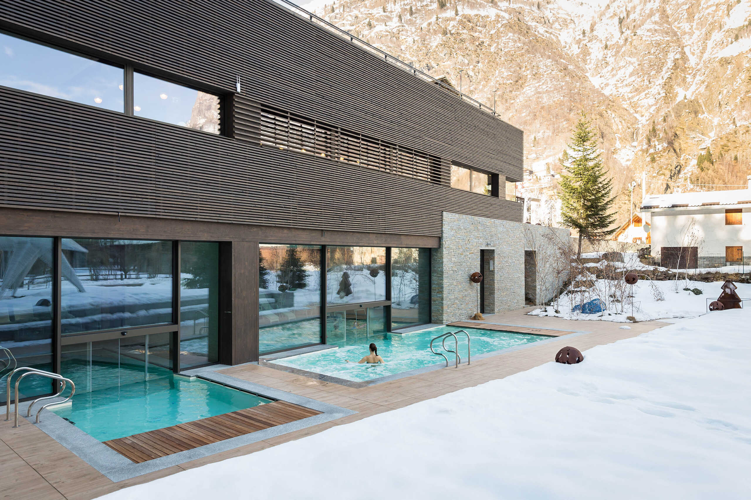 È appena stata ristrutturata e ampliata la Family Sogni d’Oro SPA del Mirtillo Rosso di Riva Valdobbia (VC), Alagna-Monte Rosa. Uno spazio di gioco e di benessere dedicato alle famiglie, con piscine igienizzate attraverso l’elettrolisi del sale al posto del cloro. Il Resort mette a disposizione degli adulti uno spazio di 400 metri quadri, che prevede una zona acqua con due piscine interne/esterne riscaldate a 34°C, una vasca di galleggiamento al sale e una vasca idromassaggio adatta ai massaggi in acqua. Una zona umida con sauna finlandese, bio-sauna agli agrumi, bagno turco e docce emozionali. Inoltre, una piscina interna, profonda 30 cm, dedicata ai bambini, con scivolo e giochi, sdraio e un giardino esterno. Insomma, una SPA divertente, dove tutti possono trovare uno spazio per rilassarsi e giocare. Infine, a disposizione dell’ospite, ci sono cabine per il massaggio di coppia e cabine estetiche dove scegliere tra 30 trattamenti restituivi o di remise en forme. Come il trattamento al sale rosa dell’Himalaya, l’Indian Massage (riequilibrante), il massaggio con campane tibetane, quello per donne in gravidanza e i rivitalizzanti all’acido iarulonico.