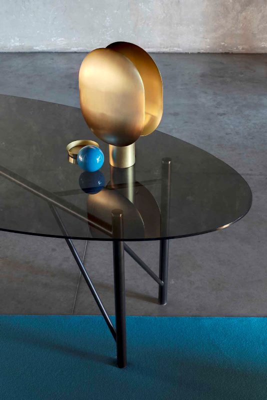 La collezione “Super” di Mentemano, disegnata dall’architetto Nicola Gisonda, è costituita da molte proposte. Sotto la lente di ingrandimento oggi c’è la linea Tubolar, creata da tavolo con una base in tubolare di metallo verniciato a formare un intreccio di linee definite e speculari. Si completa con un piano in cristallo fumè temperato che permette di intravedere la struttura. Tubolar è disponibile sia con piano di forma rettangolare sia con piano di forma ovale.