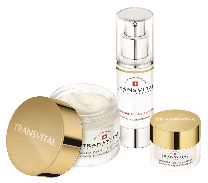 Alla base della nuova linea Regenerating Transvital c’è l’azione rigenerante e antietà dello Skin Regenerating Complex, un pool di estratti vegetali composto da tannini, fitonutrienti, lecitina di soja, peptidi vegetali-orsirtine, microsfere di acido jaluronico, oro e platino. E poi c’è il Matrixyl 3000®, un peptide che stimola il processo di riparazione dei tessuti: opera direttamente sui fibrobalsti, le cellule che producono nuovo collagene ed elastina, ossia nuova pelle. Inoltre la presenza di cellule staminali vegetali della mela, contrasta il cronoinvecchiamento e il foto invecchiamento stimolando la riparazione della parete cellulare danneggiata. I primi risultati sono già visibili dopo 48 ore. Collagene marino, polvere di oro e platino, completano la formula, stimolando il ricambio cellulare e donando luminosità e levigatezza.