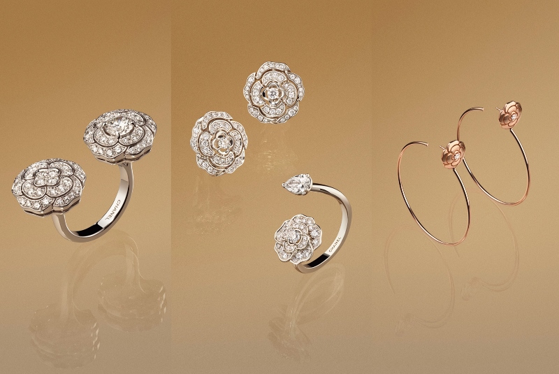 Fiore emblematico di Gabrielle Chanel, la camelia si inserisce tra le sue icone. Senza profumo, senza spine, la seduce con la sua semplicità. All’opulenza di una rosa preferisce la sua sobrietà, la sua rotondità quasi geometrica e il classico ordinamento dei suoi petali di perfetta regolarità. È una camelia bianca che diventa uno dei suoi emblemi. Diamanti, oro rosa e oro bianco si adornano del loro splendore più sottile su questi gioielli dai volumi aerei che esprimono tutta la forza, il savoir-faire e la creatività di Chanel Gioielleria.