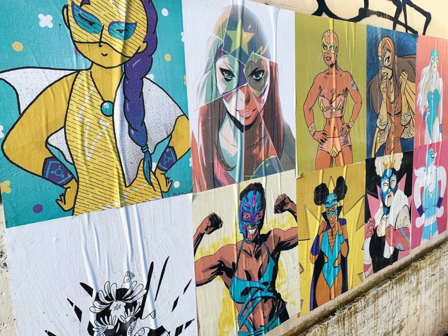 Oltre 600 manifesti di luchadoras hanno invaso i muri della Prenestina, del Quadraro, di Ostiense, di Trastevere, fino ad arrivare in alcune strade del centro storico. La “challenge” delle luchadoras nasce su Instagram per iniziativa dell’artista Rita Petruccioli che, dopo aver disegnato la sua prima luchadora ha dato inizio alla call #drawthisinyourstyle.