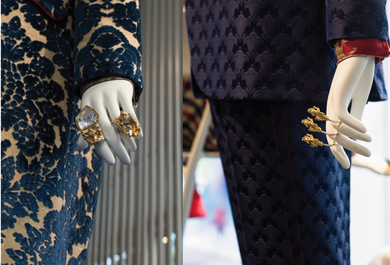 I Gorgoyle sono simboli da raccontare e arcane figure che raccontano, non meno beffarde e ironiche degli attuali sticker. Il creative flair di Gianni De Benedittis ha voluto riprodurre i misteriosi doccioni gotici del Duomo di Milano, con le loro ammiccanti fauci a terminazione di antiche grondaie, in piccole sculture gioiello, in divertenti amuleti da portare sul petto a protezione di chi li indossa; facendoli dialogare a distanza con gli interessanti telamoni e cariatidi o altre figure semipagane che fanno bella mostra di sé nei capitelli della Basilica di Santa Croce a Lecce, come le rigogliose figure femminili nell’ardita immagine di una inconsueta e prorompente rinascita della natura. Tutti i gioielli, meticolosamente progettati in 3D, sono realizzati in argento con bagno in oro; alcuni, per la prima volta impreziositi da cristalli Swarovski, a suggerire l’idea dell’acqua, oltre che a segnare una prima collaborazione con questo importantissimo marchio. Splendidi i Double ring bifacciali con bislacche figure antropomorfe, talvolta alate e protese nello spazio, che fanno da controcanto ad animali fantastici e allegorici come il grifone, simbolo della duplice natura terrestre e divina, o il drago, personificazione del male e leggendario ostacolo da superare per il raggiungimento della perfezione; tutti simboli, forse ereditati dai bestiari medievali, che oltre a giocare con la fantasia del barocco in questa collezione si prestano al singolare decoro dei gioielli futuroRemoto.