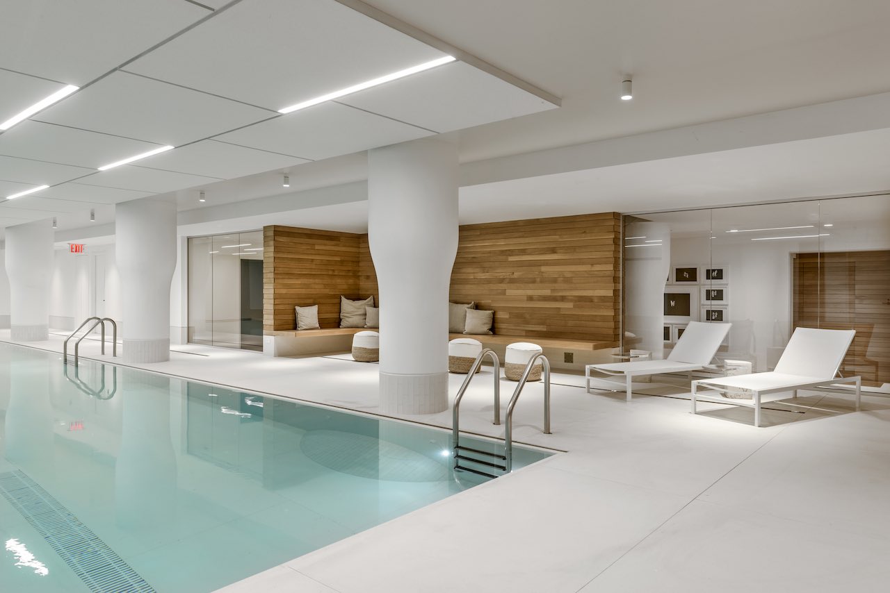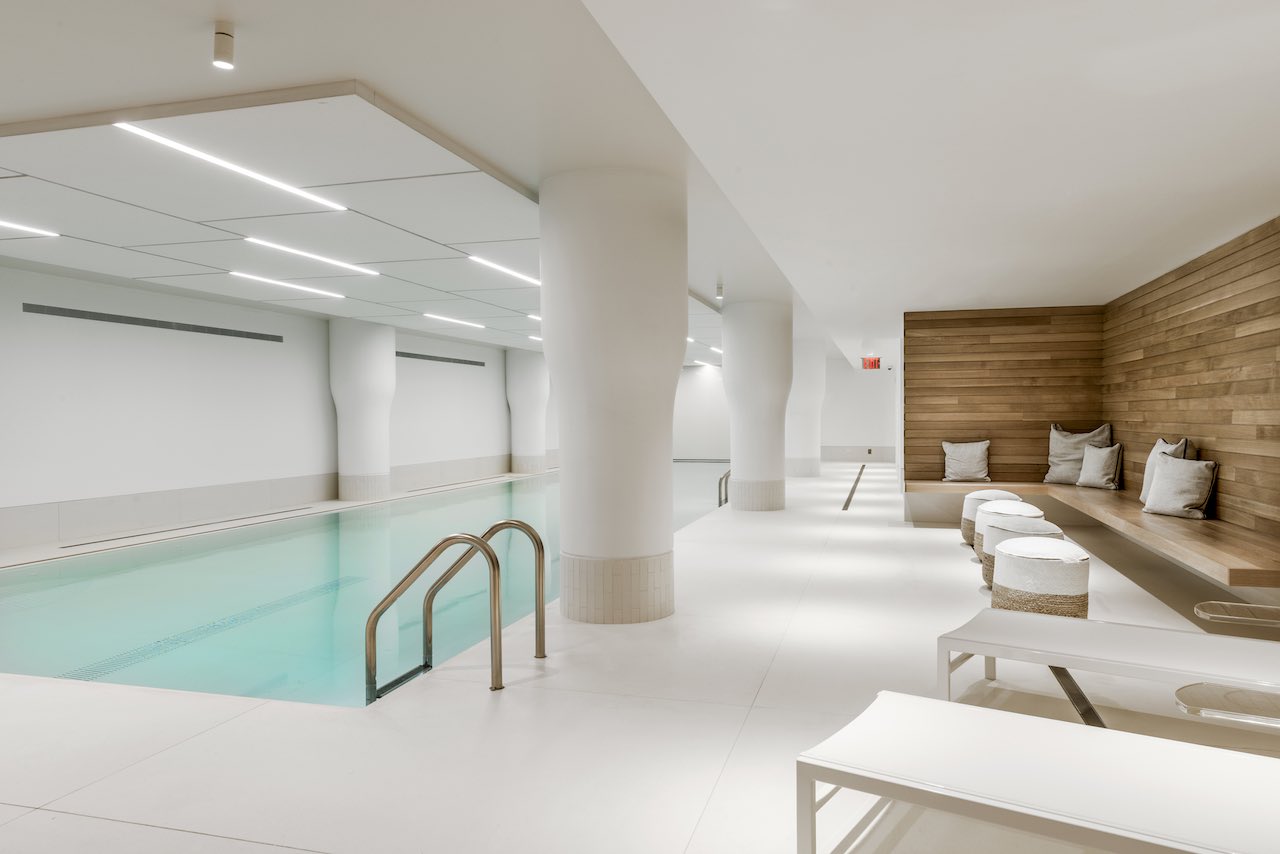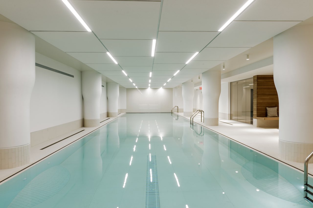 Ci sono luoghi segreti nel cuore di New York dove è possibile trovare rifugio dal caos della metropoli. È il caso di questa piscina, celata nel seminterrato di uno dei palazzi più prestigiosi di Manhattan, dove è stato realizzato uno spazio armonioso nel quale fermare il tempo e ricaricare le energie. Il progetto ha linee essenziali e geometrie pure, accentuate dall’illuminazione artificiale e interrotto dall’effetto dello specchio d’acqua e del rivestimento ligneo a parete che creano un netto contrasto con le lastre di Lapitec nella sua nuance Bianco Polare.