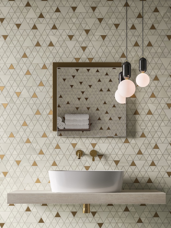 Eleganza e lucentezza sono le caratteristiche che identificano Prestigio Onyx, una collezione che reinterpreta in chiave contemporanea l’onice, la più lussuosa delle pietre naturali. Il materiale è stato sviluppato per parlare un linguaggio estetico armonioso attraverso sofisticate trame e sfumature. L’attenzione ai dettagli e i contrasti cromatici definiscono una superficie dall’aspetto raffinato e profondo. La venatura prende forma ed emerge in modo equilibrato dalla purezza dello sfondo. Un’eleganza contemporanea, enfatizzata dalla scelta di due finiture, Soft e Lucido in tre delicate tonalità: bianco, grigio e una calda sfumatura beige dai contrasti più marcati. Completa la gamma Mosaico, composto da piastrelle triangolari di diverse dimensioni, con inserti dorati, a sottolineare la preziosità del materiale. L’intenso legame con la luce e la raffinata grafica generano ambienti dal forte impatto visivo, conservando al tempo stesso un’elegante leggerezza visiva.