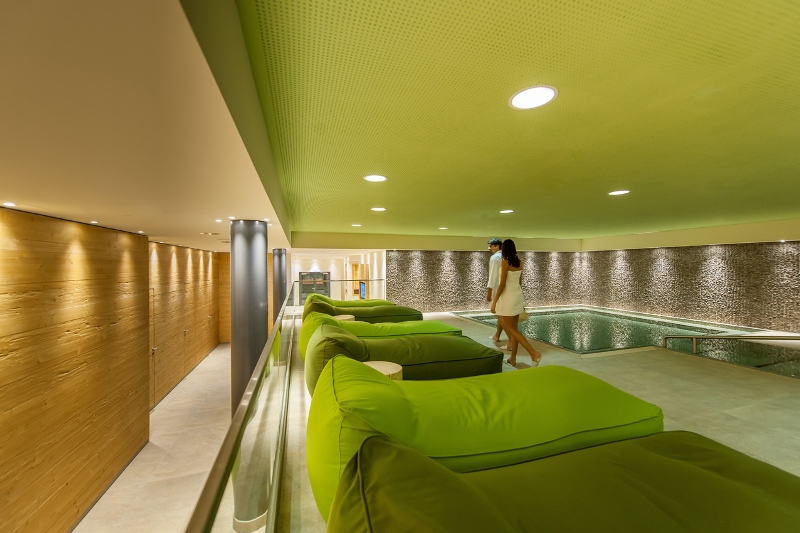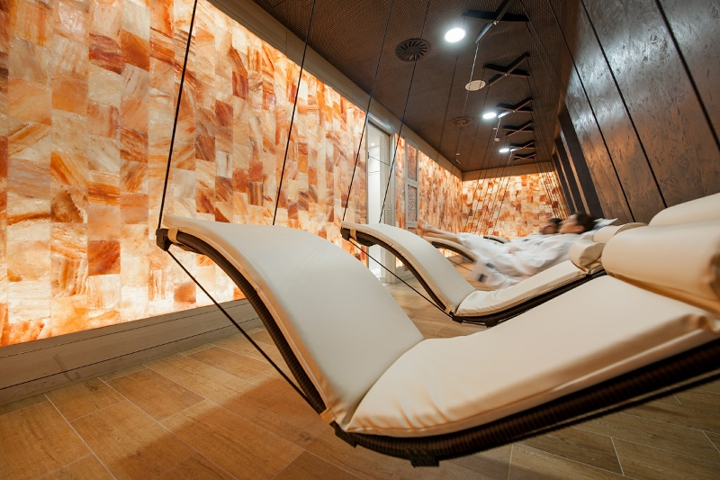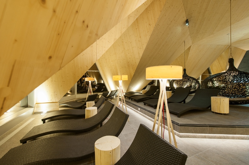 Si può sperimentare una sauna alle erbe con le tipiche erbe delle Alpi dell’Ötztal; ci si può addentrare nel mondo dei minerali con il bagno turco di cristallo della Ötztal, che regala un profondo rilassamento (prima del bagno turco ci si può fare un peeling ai minerali); ci si può riscaldare nella grandissima sauna panoramica, oppure immergersi nei lettini idromassaggio esterni, una sorta di vasche gemelle con l’originale acqua termale di Längenfeld. Numerose sono poi le proposte per schiacciare un sonnellino o sognare ad occhi aperti: dai lettini sospesi nella stanza con le pareti di sale, ai morbidi lettini verdi disposti sul bordo della piscina, ai grandi “nidi-dondoli” da dove godere il panorama, ai numerosi lettini e divani disposti intorno al bar.