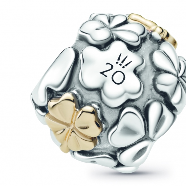 Il charm quadrifoglio in edizione limitata, caratterizzato da dettagli in oro 14k, sarà disponibile dal 20 maggio solo online e in quantità limitata. Ogni charm è caratterizzato da una speciale incisione ideata per i 20 anni e da uno speciale certificato di autenticità.