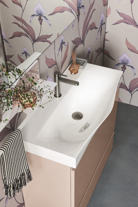 Delicato e femminile, sinuoso e pulito, il mobile monoblocco a terra Street 30 di Arbi Arredobagno con doppio cassetto laccato nei toni del Blush lucido, ben si inserisce anche in spazi ristretti, offrendosi come una soluzione che consente di dare brio ad ogni tipo di bagno. Il lavabo Today in mineralguss ha la vasca che si allarga nella parte centrale, in modo da aumentarne la capienza e la mensola New Clip può essere usata come comodo portasalviette. Estetica, attenzione al dettaglio e qualità sono i valori che guidano da sempre Arbi Arredobagno nella continua ricerca di un design innovativo, dando la possibilità a chiunque di portare nella propria quotidianità arredi originali e totalmente made in Italy.