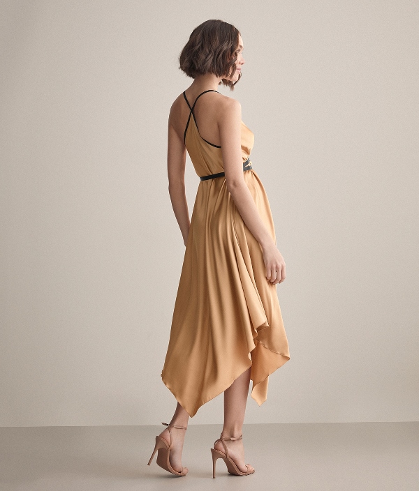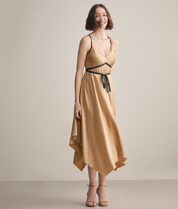 L’estate è finalmente alle porte, e con lei anche la voglia di ripartire ma sempre con stile. Falconeri pensa ad una linea di abiti in seta che combinano la leggerezza del filato naturale ad un fit in grado di esaltare la silhouette. Lo slip dress Falconeri è pensato con un taglio asimmetrico, con punto vita segnato da un nastro che riprende le spalline andando a creare un gioco di intrecci, il volume è fluttuante grazie alla gonna che scende morbida e svasata. L’eleganza di questo look è senza tempo ed è la scelta perfetta per le nuove ricorrenze estive ma decontestualizzato con una denim jacket o accessori informali diventa l’outfit per accompagnare le occasioni più decontracté.