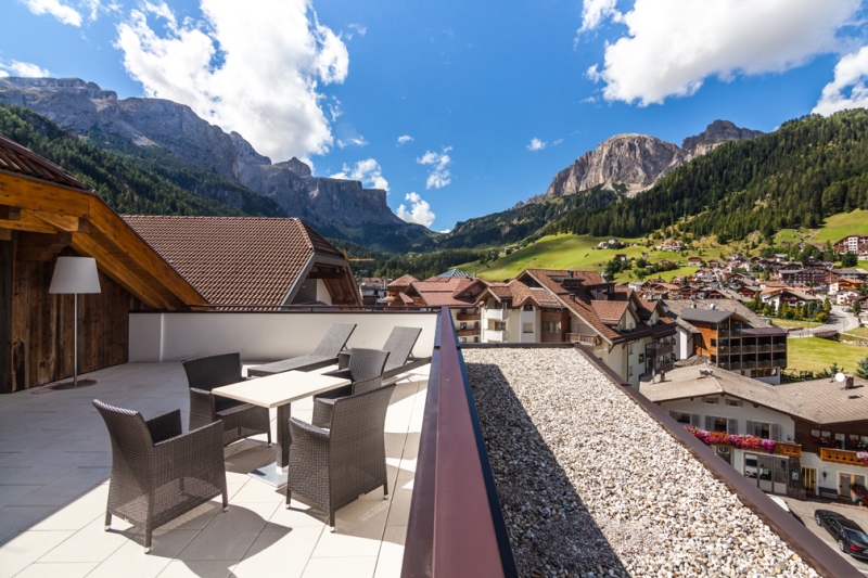 Un centinaio le camere, distribuite tra il corpo centrale e la vicina dependance Martagon, tutte recentemente sottoposte a restyling (tra cui 20 camere “Superior” rinnovate completamente nel 2019). Tra le suite spiccano le Wellness, dotate di sauna privata e con vista sul gruppo del Sella e sul passo Gardena, e le due suite Sellaronda (50 mq), con due bagni per venire incontro alle esigenze delle famiglie più numerose. Inoltre gli ospiti possono scegliere anche una delle otto suite Sassongher o la magnifica suite Panorama (100 mq): la chicca qui è senza dubbio la scenografica vasca whirlpool sulla terrazza, ma anche l’interno ha un’atmosfera molto romantica, con tanto di caminetto in sasso.