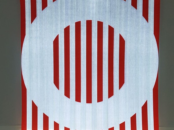 Artista di fama interazione, esponente dell’Institutional Critique, Daniel Buren ha utilizzato per la prima volta nel 1965, come supporto per la propria pittura ridotta al grado 0, una tenda da sole, il cui motivo a bande verticali bianche e colorate di 8.7 cm è divenuto, da quel momento in avanti, il dispositivo visivo utilizzato dall’artista in tutti i propri lavori.