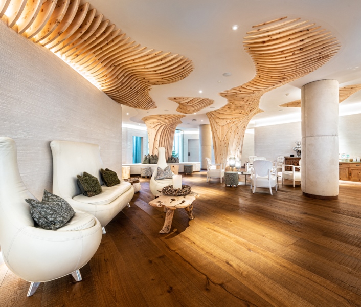 Benessere a 360° nei 3.000 mq di area wellness con diversi tipi di saune, bagno turco, bagno sole, sanarium, idromassaggio con acqua salina; inoltre piscine coperta e esterna, infinity pool di 25 metri su terrazza panoramica. L’ampia offerta di massaggi e trattamenti è arricchita dai nuovi ambienti spa: 12 nuove suite fra cui Aemotio Spa con particolare lettino ad acqua riscaldato e due Fanes Private Suite, esclusive e spaziose cabine trattamento dove vivere un paio d’ore indimenticabili con la propria dolce metà. La suite Regno del Cirmolo è una pura immersione nel benessere di tradizione alpina: gli interni in caratteristico legno di cirmolo diffondono un gradevole e benefico profumo nella stanza, che comprende anche sauna al fieno e all’esterno vasca salina circolare. Caratteristiche della suite Regno del Fanes sono invece ampio bagno turco e due originali vasche da bagno ricavate ciascuna da un unico tronco di castagno, per fare un bagno al siero di latte, di vinaccioli o di oli aromatici all’interno di una autentica opere d’arte. Interamente dedicata al trattamento di punta è invece la stanza Caveau, dal design raffinato sui colori nero e oro, che richiama i prodotti dell’omonima linea cosmetica, naturali rimpolpanti e anti-aging, una vera cura per la pelle.