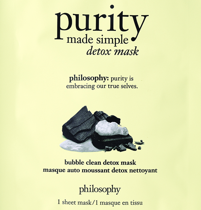 La detersione diventa divertissement con purity made simple bubble clean detox mask di philosophy che detossifica la pelle in appena 3 minuti. La speciale maschera-mousse in tessuto al carbone, impregnata con estratti di corteccia di salice bianco e di tè verde, aiuta a rimuovere ogni traccia di makeup e impurità oltre che a minimizzare la presenza dei pori nel tempo. Non è necessario lavare il viso prima di applicare cleansing bubble mask. Le sue microsfere detergenti agiranno da sole liberando il viso da ogni traccia di makeup mentre la maschera è in azione.