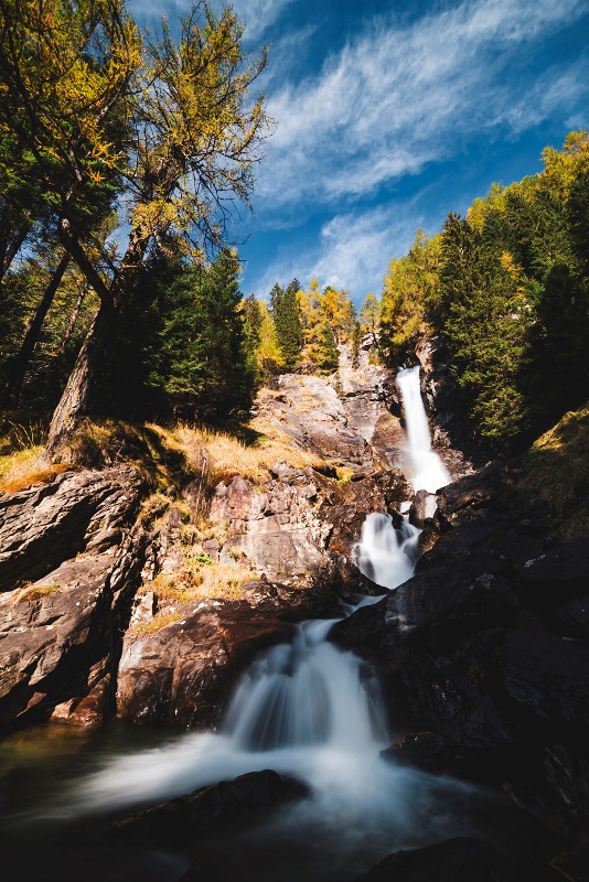 Salendo in val di Rabbi, nel Parco nazionale dello Stelvio, l’anello delle cascate di Saènt conduce ai piedi degli spettacolari salti d’acqua creati dal torrente Rabbies. Lungo questo itinerario, ad autunno inoltrato, si possono ammirare in particolare i colori intensi dei larici che, illuminati dal sole, sembrano tante torce accese. Per chi vuole proseguire è possibile raggiungere dal soprastante Prà di Saènt la “scalinata dei larici monumentali”, una successione di veri e propri “patriarchi” dei boschi del Parco.